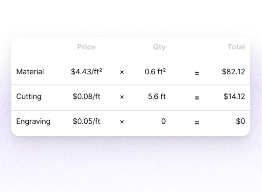 Customers understand exactly where the price comes from: material costs, work amount, and setup fees.